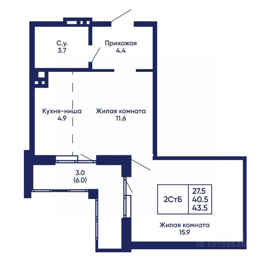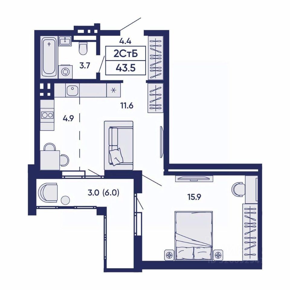 Общая площадь43,5 м²