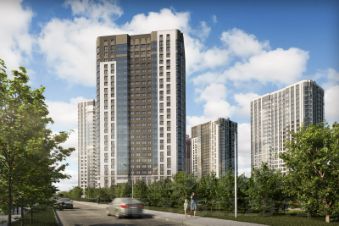 Фасады жилого комплекса - воплощение современного стиля. Такой эффект дает сочетание строгих линий, благородных оттенков натуральных материалов и блеска вертикального витражного остекления.