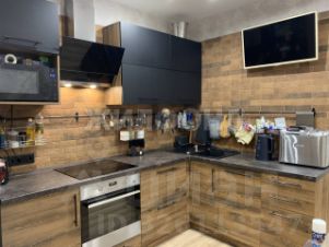 В санузле и на кухне - кафельная плитка, на полу ламинат высокого класса и прочности,