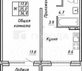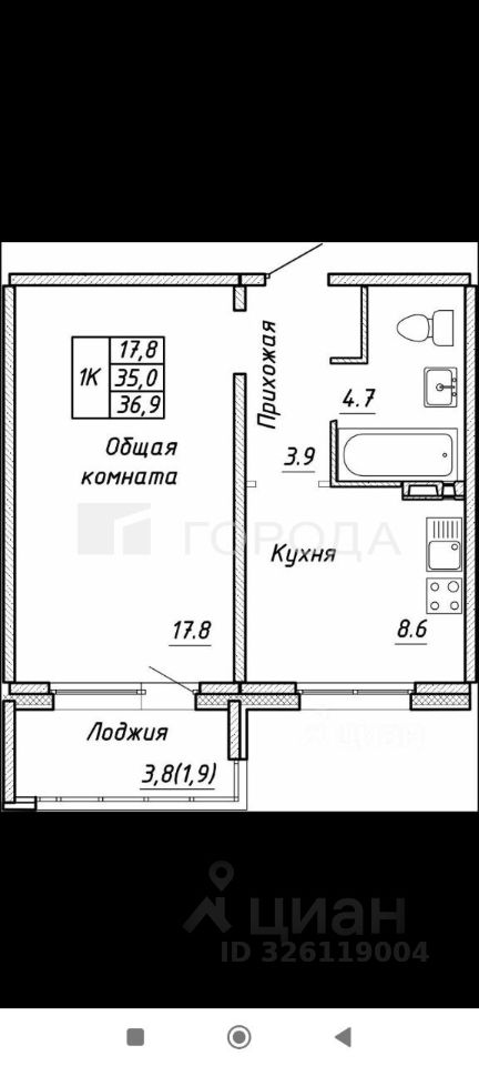 Квартира расположена на 4 этаже 17-этажного панельного дома, построенного в 2025 году. Общая площадь квартиры — 34,7 кв. м, высота потолков — 3 метра. Окна выходят во двор.