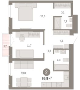Продается двухкомнатная квартира с предчистовой отделкой в Микрорайон "Европейский Берег" на 6 этаже. Общая площадь: 66.88 кв.м., жилая: 27.2 кв.м., площадь просторной кухни-гостиной: 19 кв.м. Комнаты изолированные, все окна выходят на одну сторону. В квартире один балкон, два совмещенных санузла. Высота потолков 2.7 м.