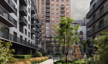 Во дворах микрорайона создано приватное пространство для жителей. Дворы имеют интенсивное озеленение и выполнены в концепции тихого сада с газоном, травами, деревьями и кустарниками. Деревья привезены из европейских питомников и высажены сразу большими. Установлены детские площадки, уличные тренажёры, спортивные корты, предусмотрены места для отдыха взрослых и прогулок.