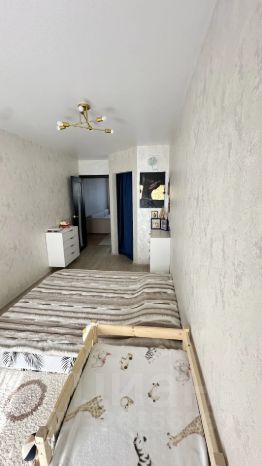 Квартира имеет удобную планировку с тремя изолированными комнатами, что позволяет комфортно разместиться большой семье.