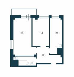 • Общая площадь: 51,6 м²