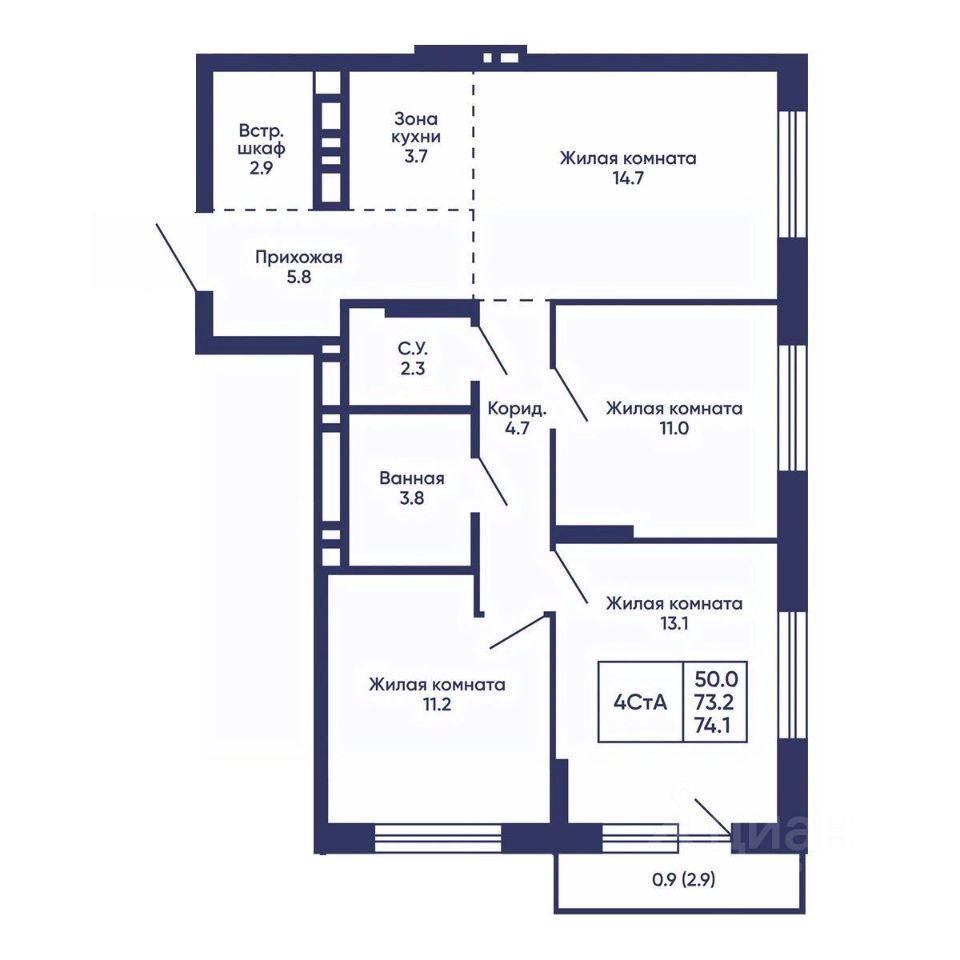Общая площадь74,1 м²