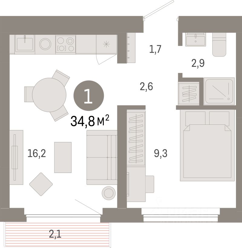 Продаётся 1-комнатная квартира в строящемся доме (Дом 1), срок сдачи: II-кв. 2028, общей площадью 34.8 кв.м., на 7 этаже. "Квартал Лебедевского" - новый проект компании "Брусника" в Заельцовском районе Новосибирска на ул. Георгия Колонды.