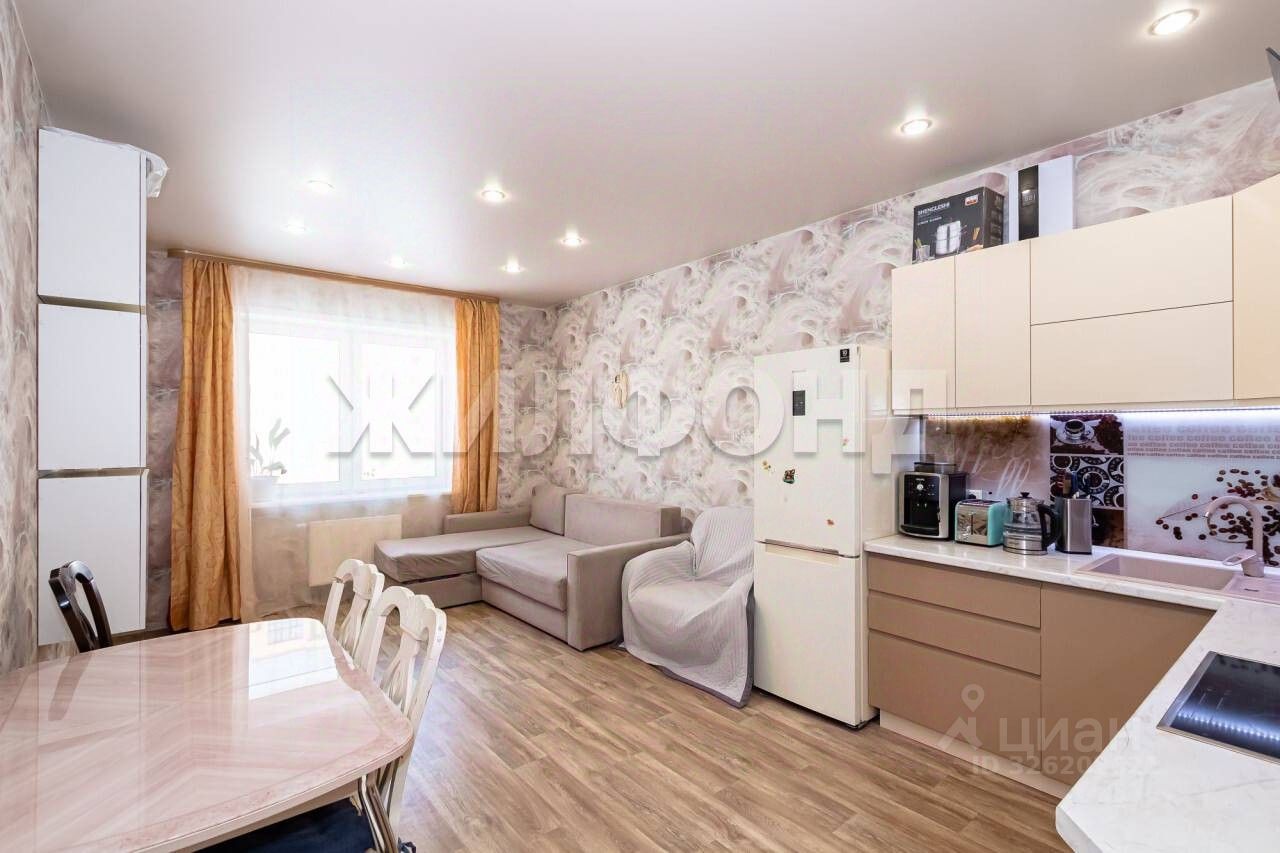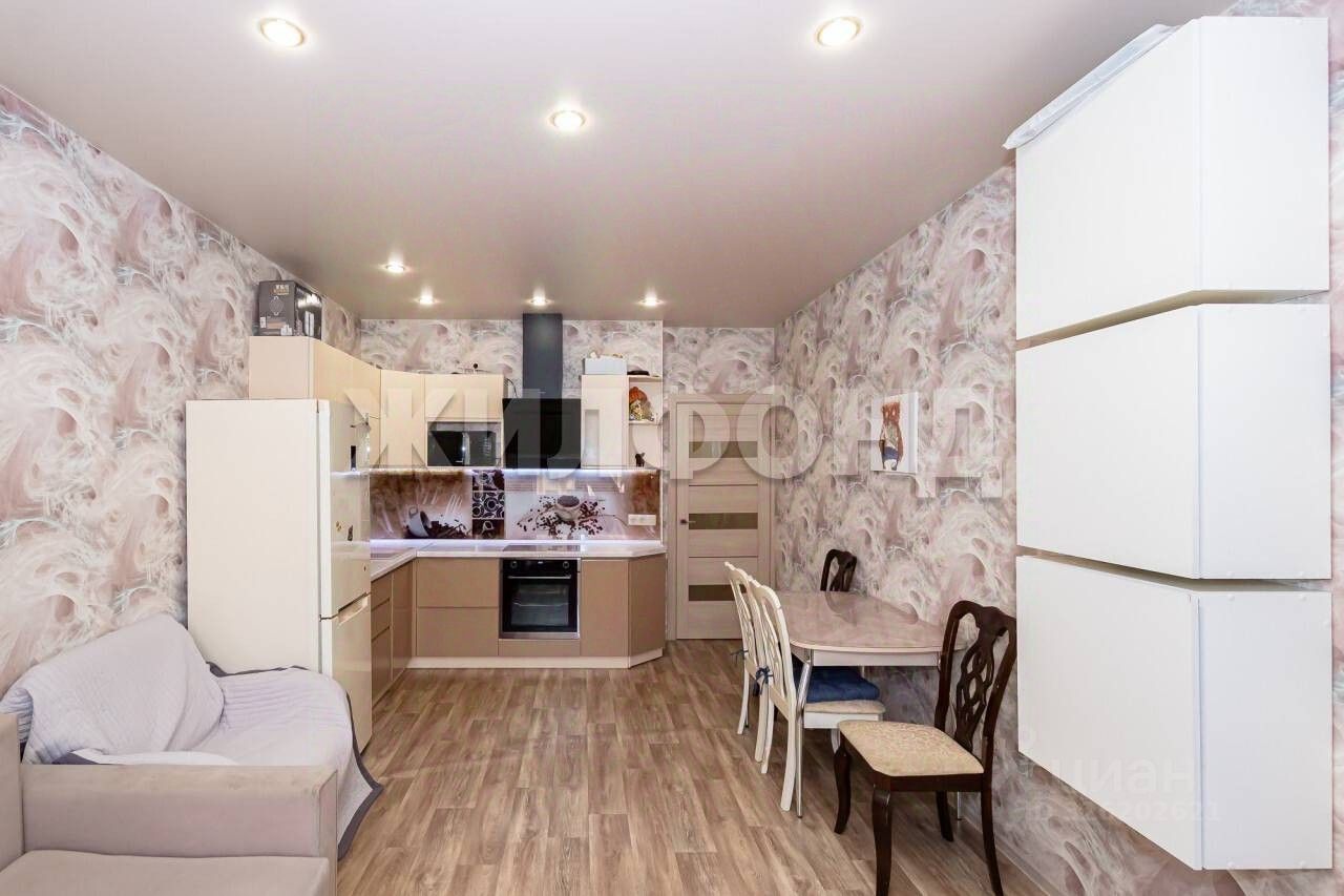 Продается двухкомнатная студия с ремонтом в новом доме. В квартире натяжные потолки, новые обои в комнатах, линолеум на полу, остается встроенная мебель и техника. В кухонной зоне фартук из закаленного стекла. В санузле искусственный камень, теплый пол. Лоджия оббита рейкой, остеклена.