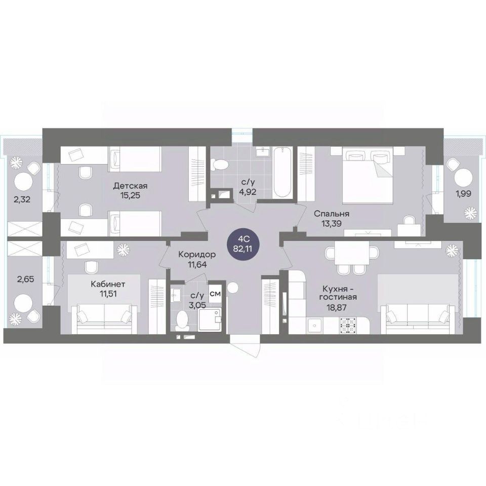 Общая площадь82,11 м²