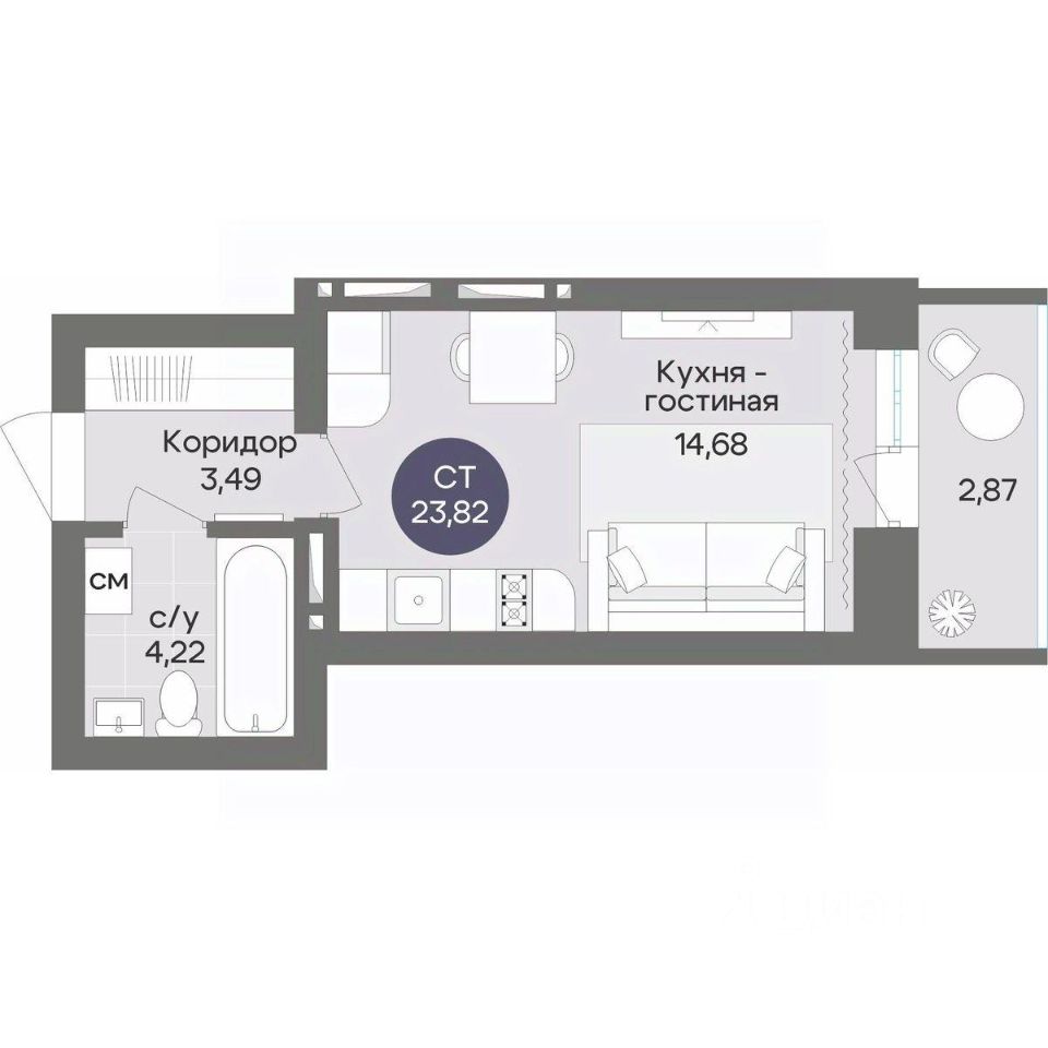 Общая площадь23,82 м²