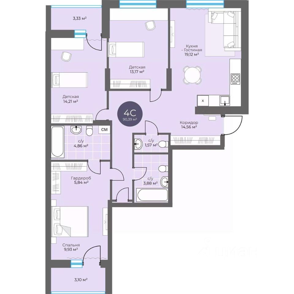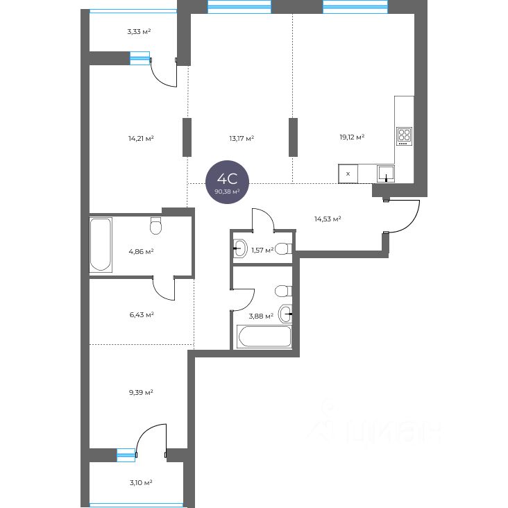 Общая площадь90,38 м²
