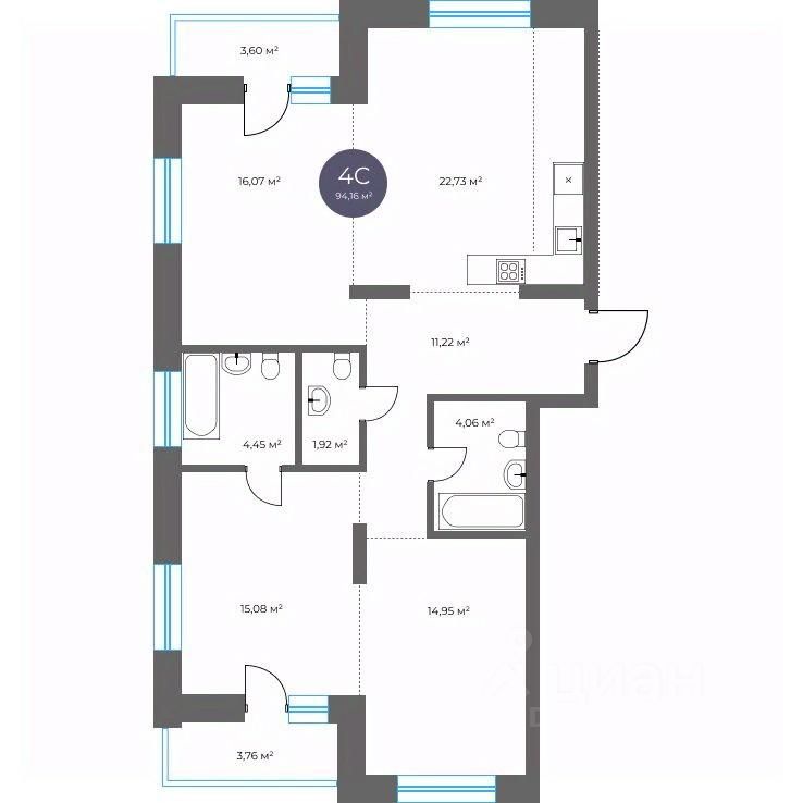 Общая площадь94,16 м²
