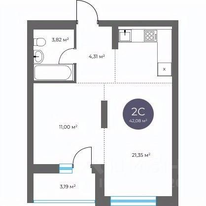 Общая площадь42,08 м²