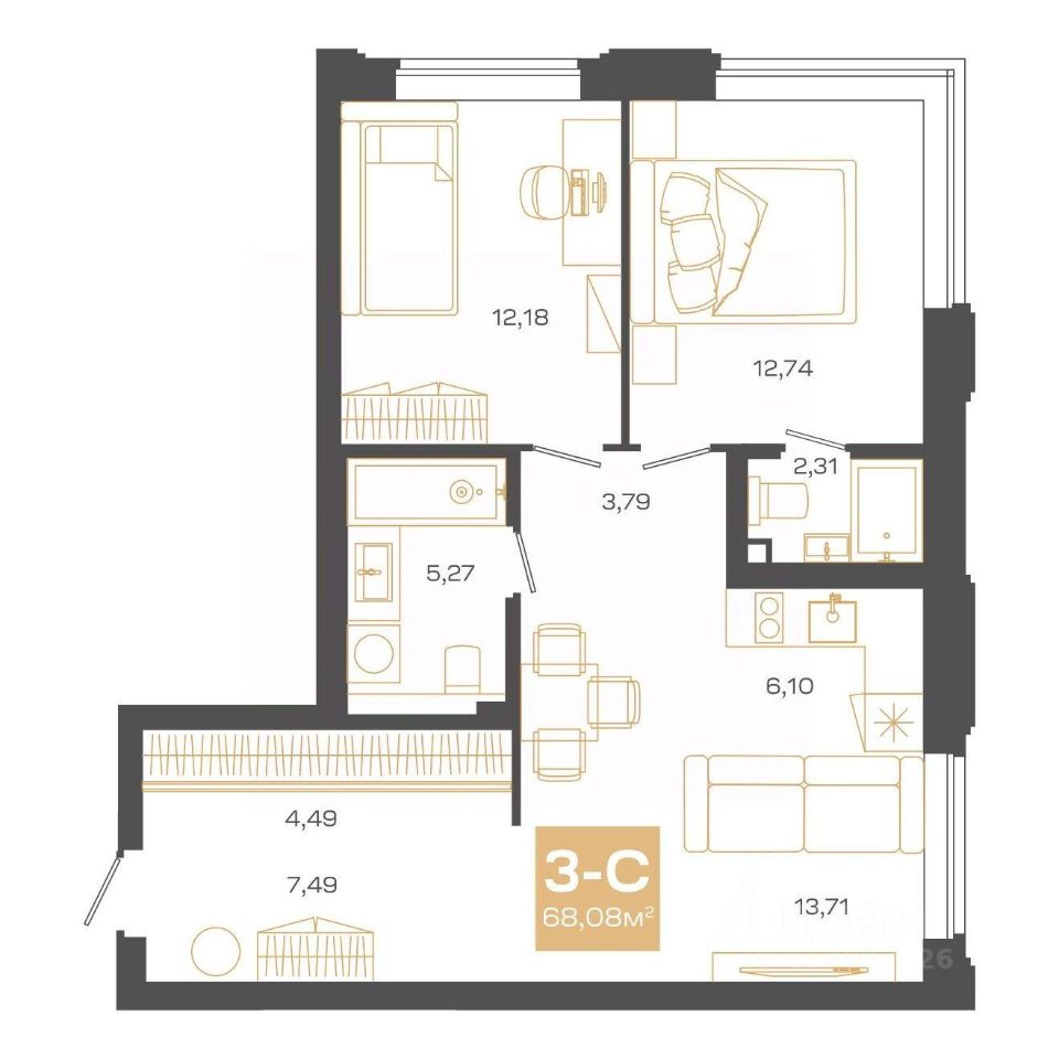 Продаётся 3-комнатная квартира в строящемся доме (Блок-секция 1), срок сдачи: II-кв. 2026, общей площадью 68.08 кв.м., на 14 этаже. Пульсар - это современный дом с развитой инфраструктурой по ул.Мусы Джалиля. Детские сады, школы, поликлиники и парки для прогулок в 5 минутной доступности.