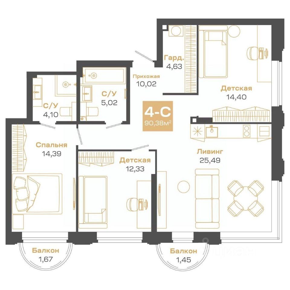 Продаётся 4-комнатная квартира в строящемся доме (Блок-секция 1), срок сдачи: II-кв. 2026, общей площадью 90.38 кв.м., на 19 этаже. Пульсар - это современный дом с развитой инфраструктурой по ул.Мусы Джалиля. Детские сады, школы, поликлиники и парки для прогулок в 5 минутной доступности.