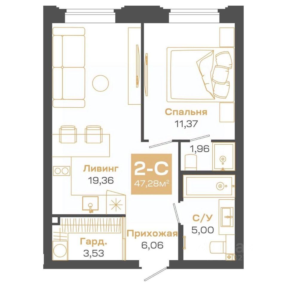 Продаётся 2-комнатная квартира в строящемся доме (Блок-секция 1), срок сдачи: II-кв. 2026, общей площадью 47.28 кв.м., на 22 этаже. Пульсар - это современный дом с развитой инфраструктурой по ул.Мусы Джалиля. Детские сады, школы, поликлиники и парки для прогулок в 5 минутной доступности.