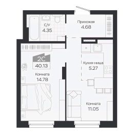 Продаётся 2-комнатная квартира в строящемся доме (Дом 3), срок сдачи: IV-кв. 2027, общей площадью 40.13 кв.м., на 7 этаже. Новый жилой комплекс "Базилик" от застройщика "Группа Мета" расположен в рп. Краснообск Новосибирской области на ул. Восточная.
