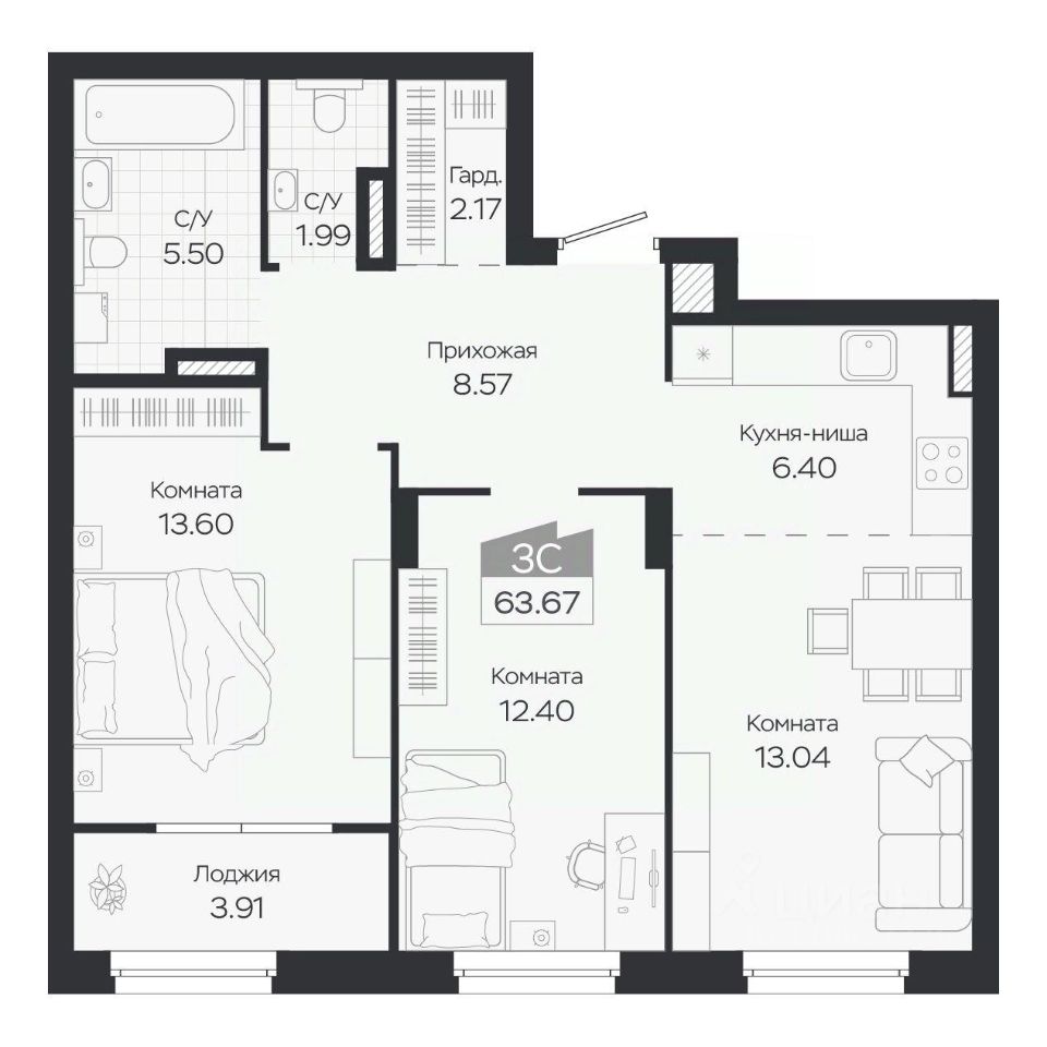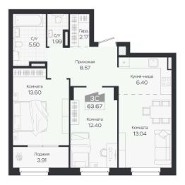 Продаётся 3-комнатная квартира в строящемся доме (Дом 3), срок сдачи: IV-кв. 2027, общей площадью 63.67 кв.м., на 6 этаже. Новый жилой комплекс "Базилик" от застройщика "Группа Мета" расположен в рп. Краснообск Новосибирской области на ул. Восточная.