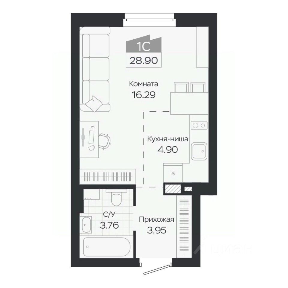 Продаётся 1-комнатная квартира в строящемся доме (Дом 3), срок сдачи: IV-кв. 2027, общей площадью 28.9 кв.м., на 6 этаже. Новый жилой комплекс "Базилик" от застройщика "Группа Мета" расположен в рп. Краснообск Новосибирской области на ул. Восточная.