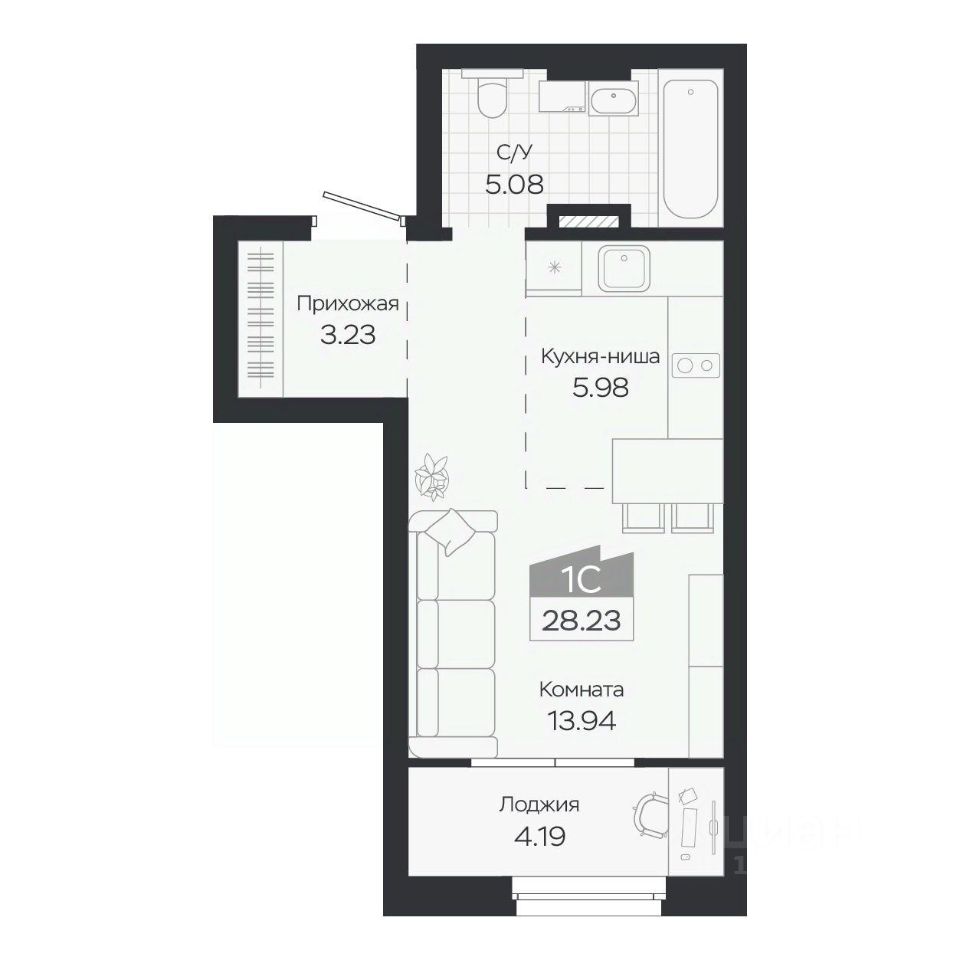 Продаётся 1-комнатная квартира в строящемся доме (Дом 3), срок сдачи: IV-кв. 2027, общей площадью 28.23 кв.м., на 6 этаже. Новый жилой комплекс "Базилик" от застройщика "Группа Мета" расположен в рп. Краснообск Новосибирской области на ул. Восточная.
