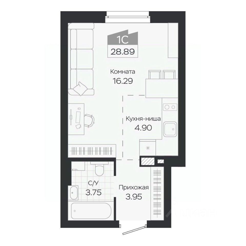 Продаётся 1-комнатная квартира в строящемся доме (Дом 3), срок сдачи: IV-кв. 2027, общей площадью 28.89 кв.м., на 7 этаже. Новый жилой комплекс "Базилик" от застройщика "Группа Мета" расположен в рп. Краснообск Новосибирской области на ул. Восточная.