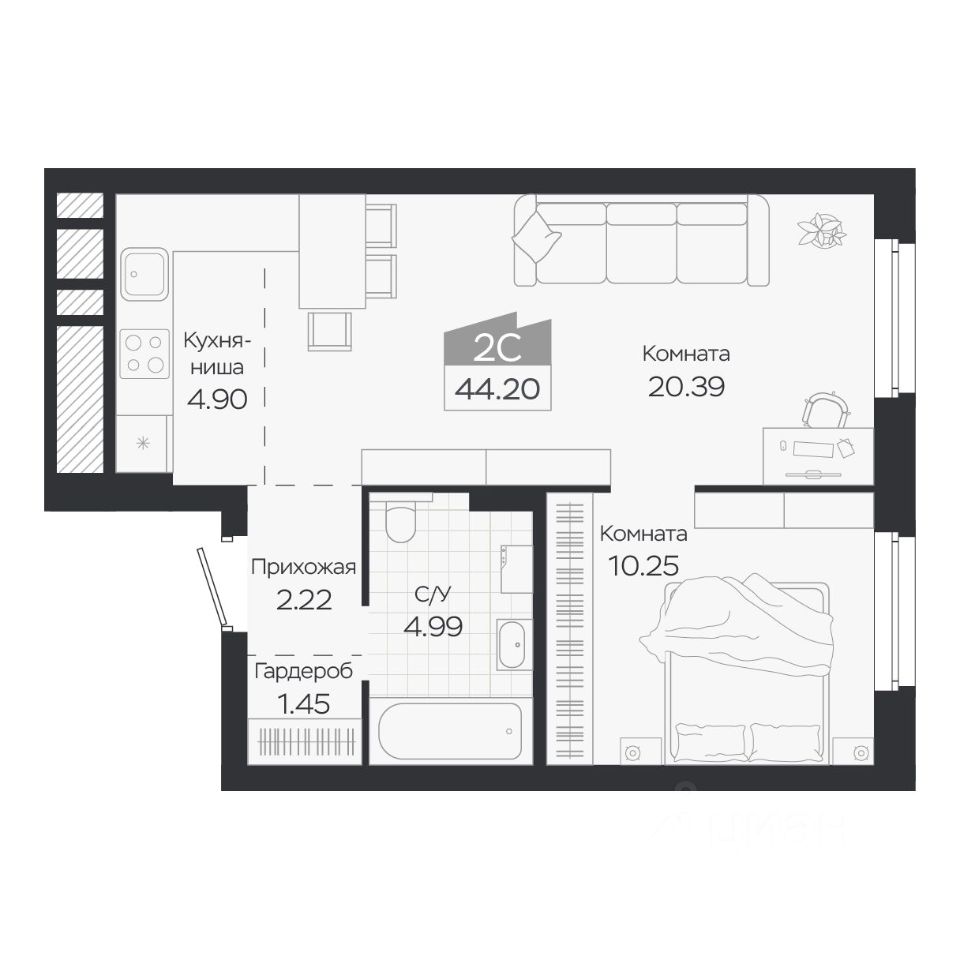 Продаётся 2-комнатная квартира в строящемся доме (Дом 3), срок сдачи: IV-кв. 2027, общей площадью 44.2 кв.м., на 6 этаже. Новый жилой комплекс "Базилик" от застройщика "Группа Мета" расположен в рп. Краснообск Новосибирской области на ул. Восточная.