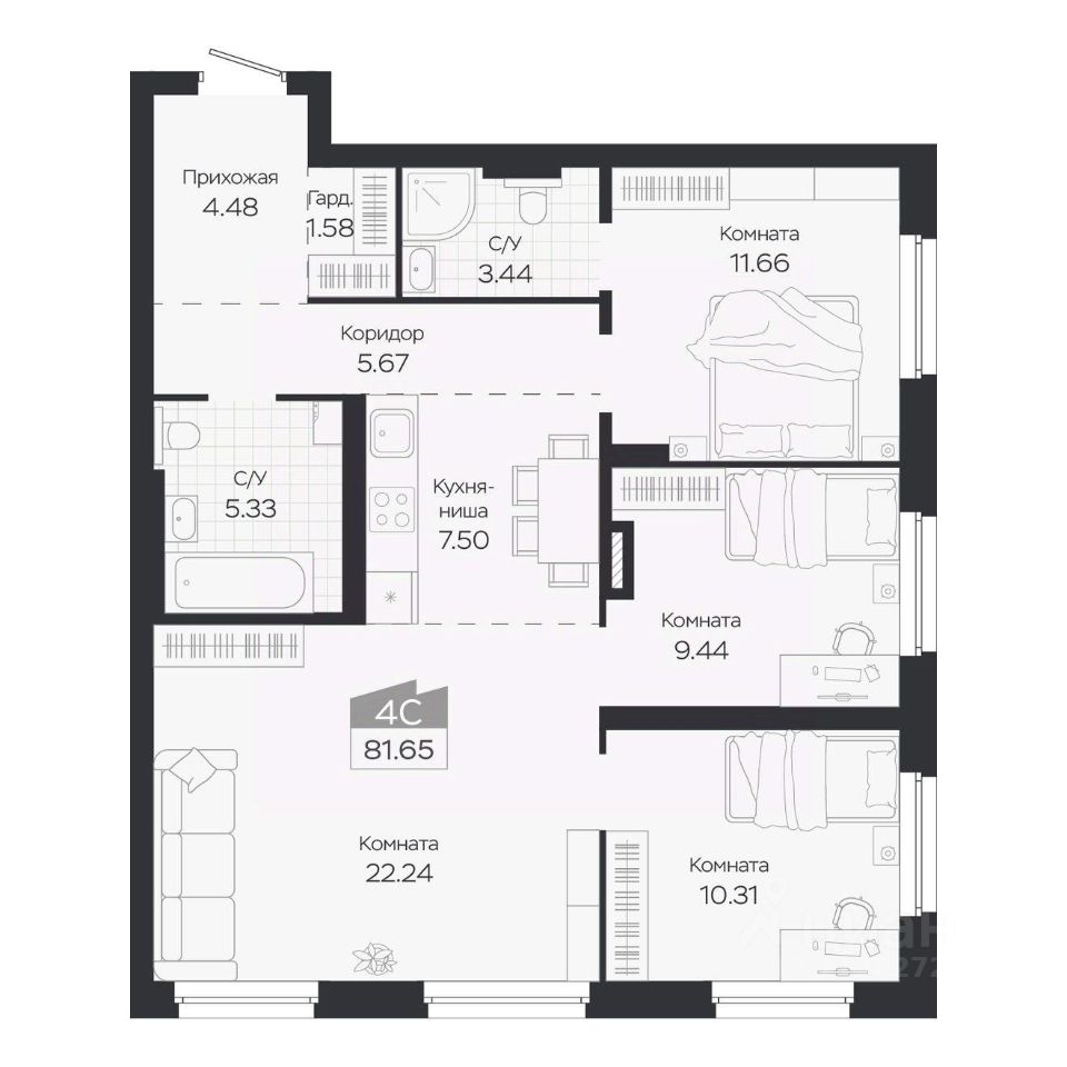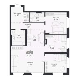 Продаётся 4-комнатная квартира в строящемся доме (Дом 3), срок сдачи: IV-кв. 2027, общей площадью 81.65 кв.м., на 6 этаже. Новый жилой комплекс "Базилик" от застройщика "Группа Мета" расположен в рп. Краснообск Новосибирской области на ул. Восточная.