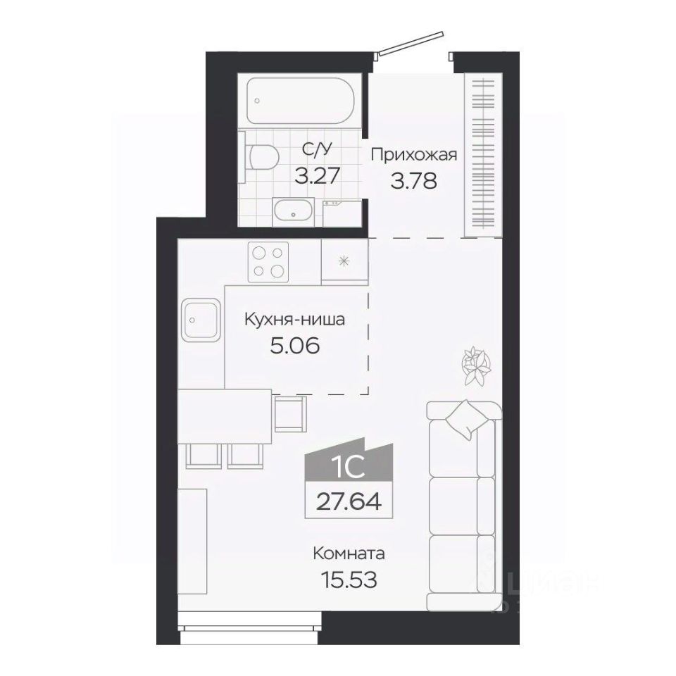 Продаётся 1-комнатная квартира в строящемся доме (Дом 3), срок сдачи: IV-кв. 2027, общей площадью 27.64 кв.м., на 8 этаже. Новый жилой комплекс "Базилик" от застройщика "Группа Мета" расположен в рп. Краснообск Новосибирской области на ул. Восточная.
