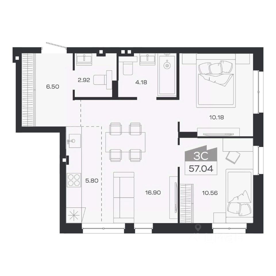 Продаётся 3-комнатная квартира в строящемся доме (Дом 2), срок сдачи: III-кв. 2026, общей площадью 57.15 кв.м., на 2 этаже. Новый жилой комплекс "Базилик" от застройщика "Группа Мета" расположен в рп. Краснообск Новосибирской области на ул. Восточная.