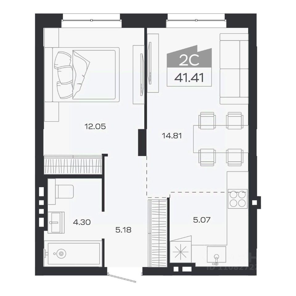 Продаётся 2-комнатная квартира в строящемся доме (Дом 2), срок сдачи: III-кв. 2026, общей площадью 41.41 кв.м., на 4 этаже. Новый жилой комплекс "Базилик" от застройщика "Группа Мета" расположен в рп. Краснообск Новосибирской области на ул. Восточная.