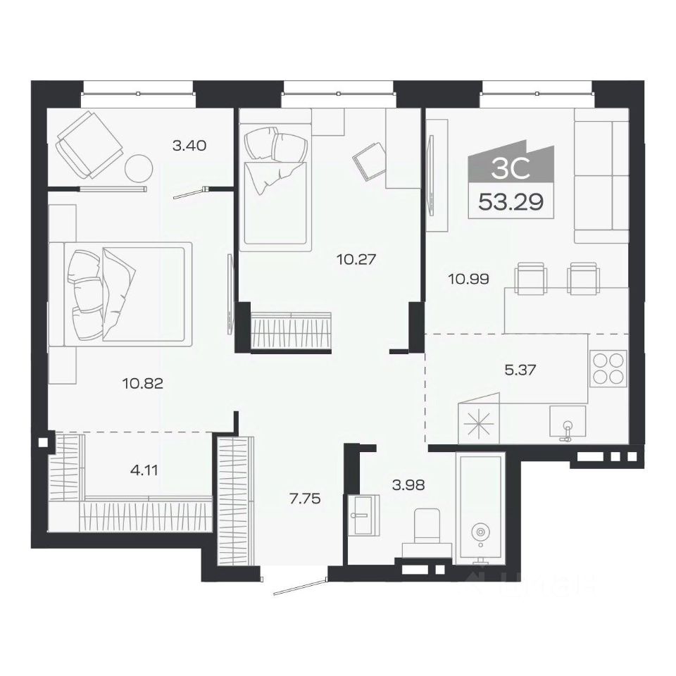 Продаётся 3-комнатная квартира в строящемся доме (Дом 2), срок сдачи: III-кв. 2026, общей площадью 53.29 кв.м., на 5 этаже. Новый жилой комплекс "Базилик" от застройщика "Группа Мета" расположен в рп. Краснообск Новосибирской области на ул. Восточная.