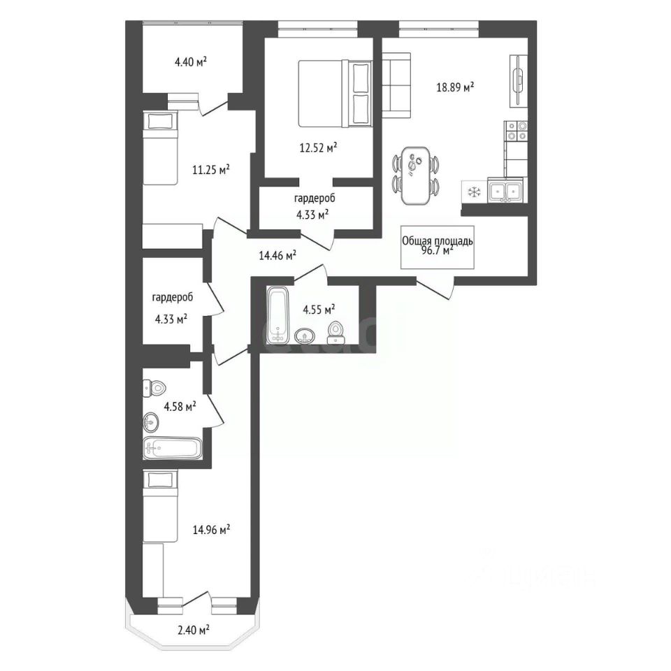 Три изолированные спальни гарантируют личное пространство для каждого члена вашей семьи, а объединенная светлая кухня-гостиная служит естественным центром для общения и отдыха. Два санузла и гардеробные зоны обеспечивают бытовой комфорт и порядок. Практичность объекта дополнена собственной кладовой для хранения сезонных вещей и двумя паркинг-местами, что решает вопросы с парковкой и освобождает пространство в прихожей.