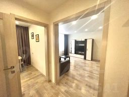 Квартира полностью укомплектована и продаётся со всей мебелью и техникой, представленной на фото: кухонный гарнитур с современной бытовой техникой, стенка, диван, оборудованная гардеробная, холодильник, стиральная машина и т.д. Наличие застекленной лоджии добавляет дополнительное функциональное пространство.