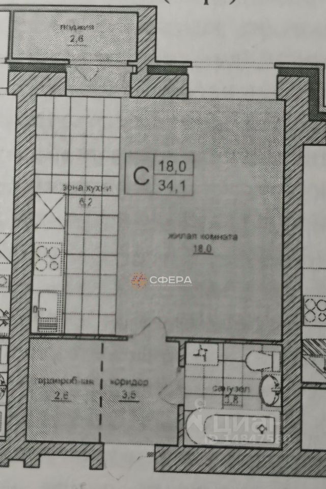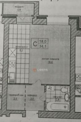 Удачная планировка, можно разделить студию на две зоны.