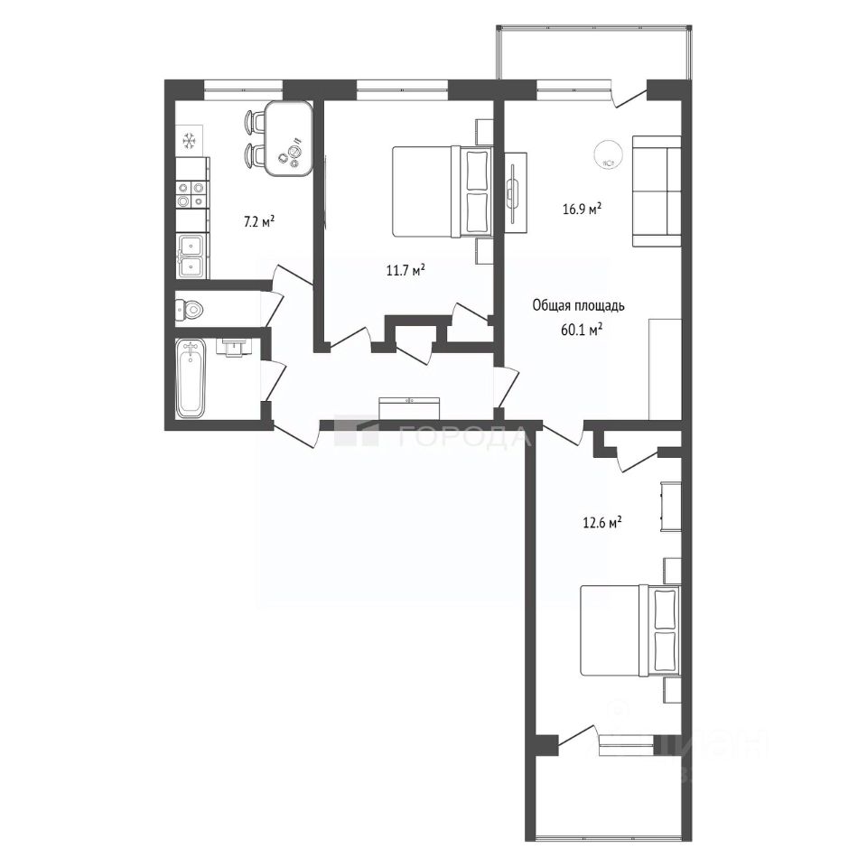 Квартира расположена на 5 этаже 9-этажного панельного дома, построенного в 1979 году. Общая площадь составляет 60,1 кв. м, из которых 28,6 кв. м — жилая площадь. Высота потолков — 2,5 м, что создаёт ощущение простора. Комнаты изолированы, окна выходят на улицу.