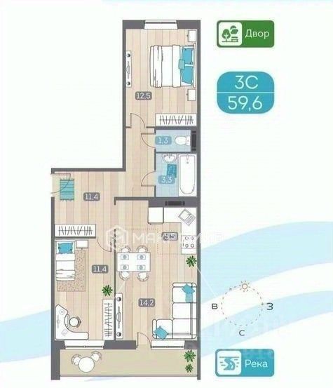 Арт. 129018605 В продаже красивая, видовая квартира в красивом благоустроенном комплексе Аквамарин с современным ремонтом, сделанного из качественных материалов.