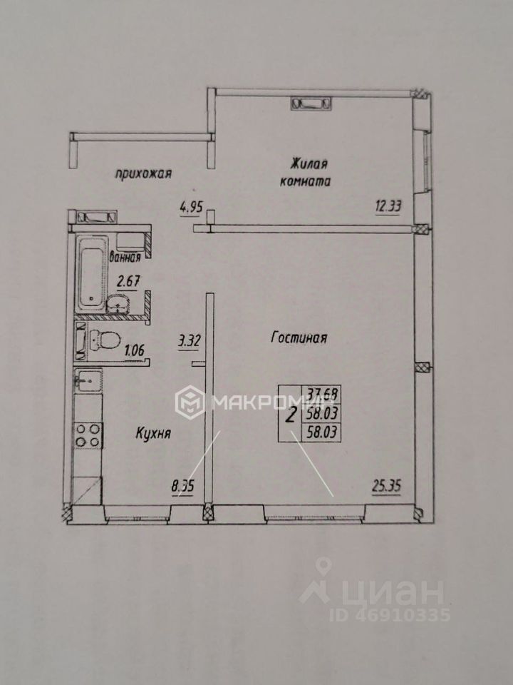 Арт. 129090332 Вашему вниманию полноценная 2 комнатная квартира!!!