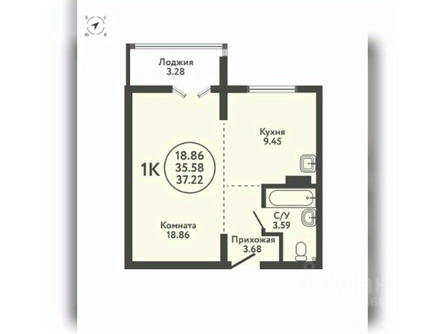 Продается 1-комн. квартира, площадью 37.22 м2.