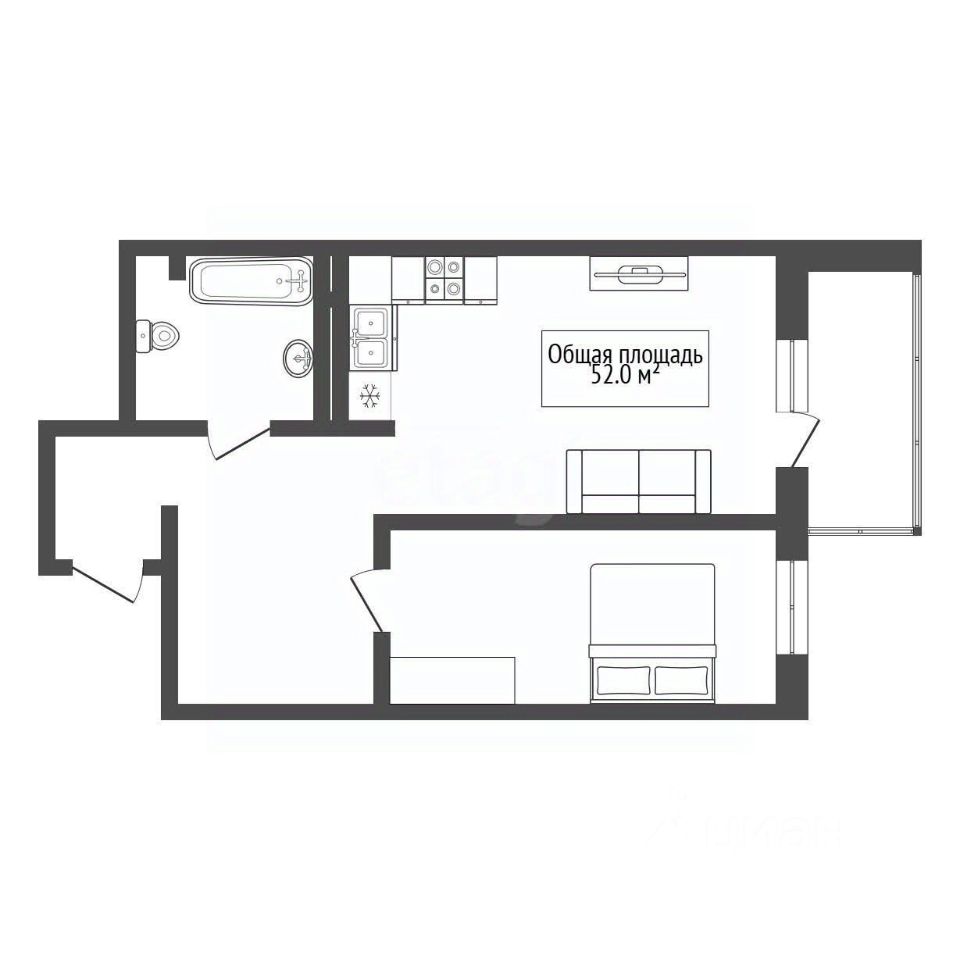 В стоимость включена практичная мебель — кухонный гарнитур, диван, шкаф и кровать. Бытовая техника может остаться по договоренности.