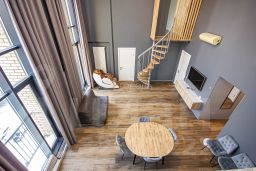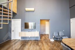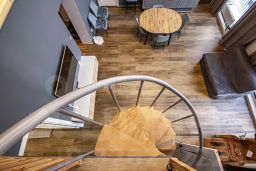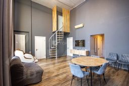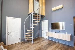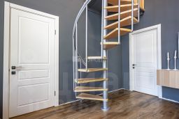 Просторная гостиная изолирована от входной группы и всех комнат. 2 из них на первом этаже и 2 на втором. К которым вас проводят винтовые лестницы сделанные по индивидуальному заказу.