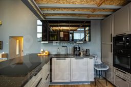 В квартире сделан современный ремонт. Встроенная кухня с островом и техникой по последнему слову дизайнерских решений, готова встречать своих новых жителей.
