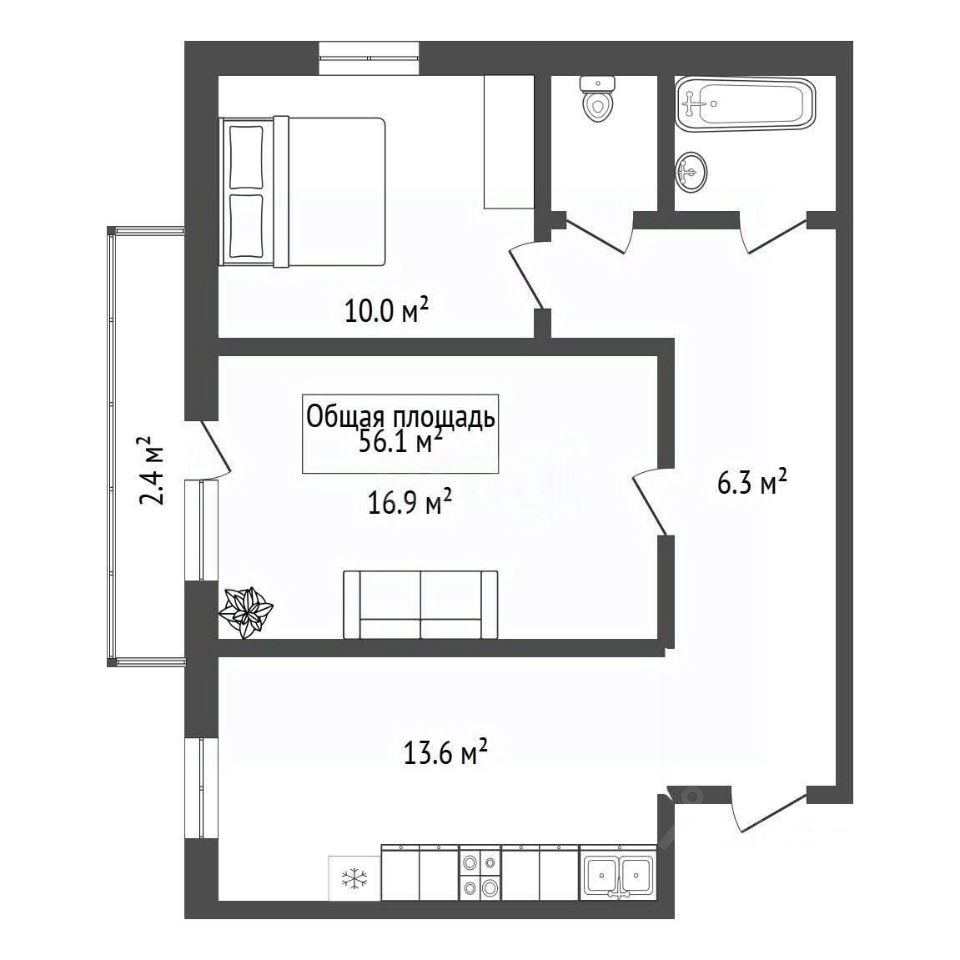 56,1 м²