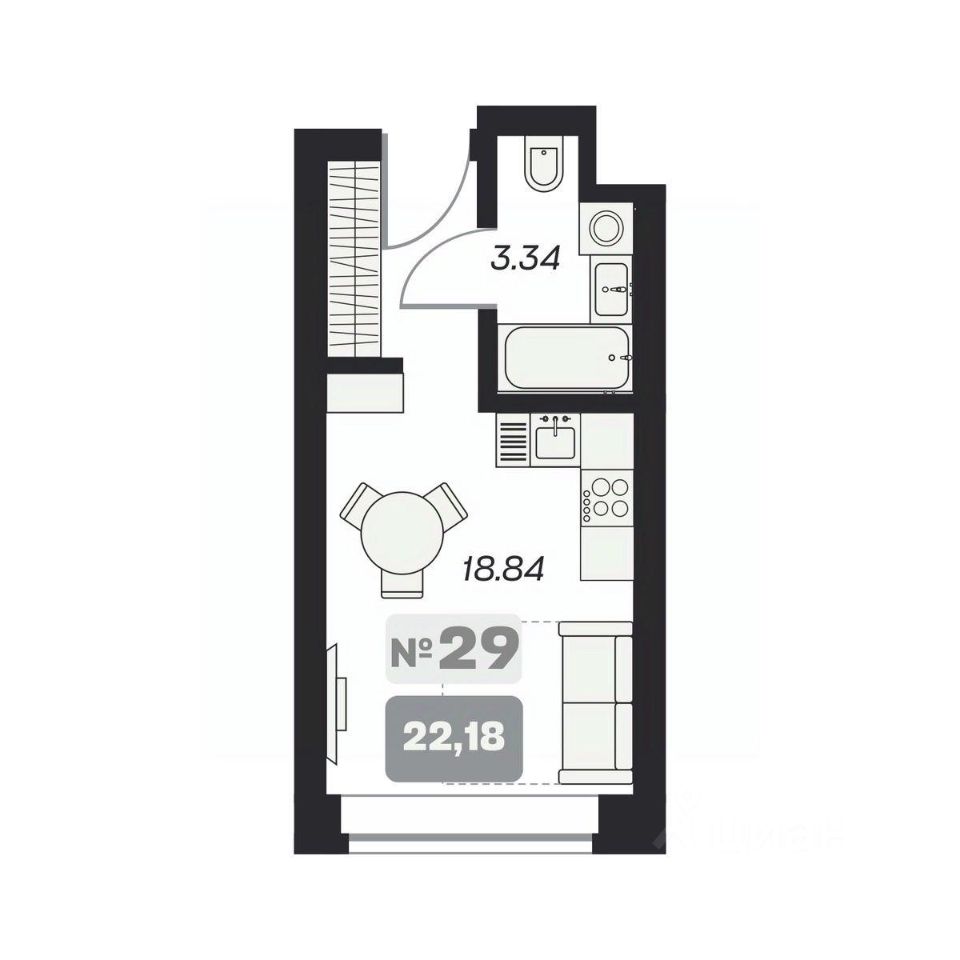 Продаётся студия-апартаменты в строящемся доме (Блоки D, Е, Е1), срок сдачи: IV-кв. 2026, общей площадью 22.18 кв.м., на 4 этаже. Апартаменты от ООО "Специализированный застройщик "Центр Левого берега" расположен по адресу: г. Новосибирск, р-н Ленинский.