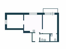 Общая площадь квартиры — 53 кв. м, две спальни ( в одной санузел) и просторная гостиная столовая.