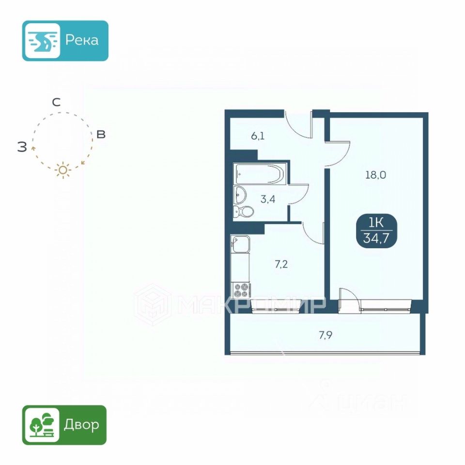 34,7 м²