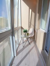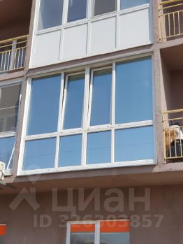 Французское (в пол) остекление на лоджии, с тонировкой, зазеркалено с внешней стороны. Лоджия обшита, проведён свет.
