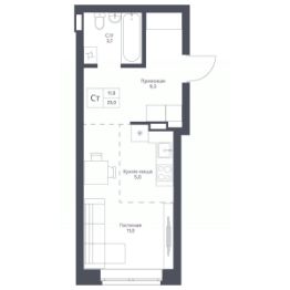 Продается 1-комн. студия с отделкой White box. Квартира расположена на 6 этаже 17 этажного монолитно-кирпичного дома в Экограде "12 дворов" от группы компаний "ПОЛЯКОВ".