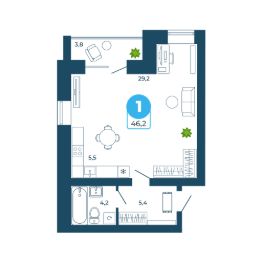 Продаётся 1-комнатная квартира в строящемся доме (1 этап), срок сдачи: IV-кв. 2027, общей площадью 46.2 кв.м., на 1 этаже. Новый жилой комплекс "Атмосфера" от Специализированного застройщика "Атмосфера" расположен по адресу: Новосибирская обл., г. Обь, ул. Муромская.