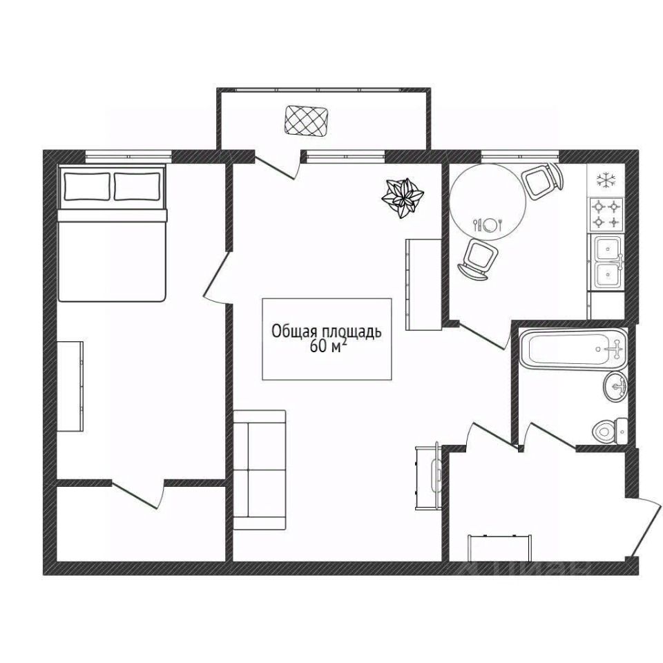 Общая плoщадь квaртиры cоcтaвляeт 60 кв. м, из котopыx 29