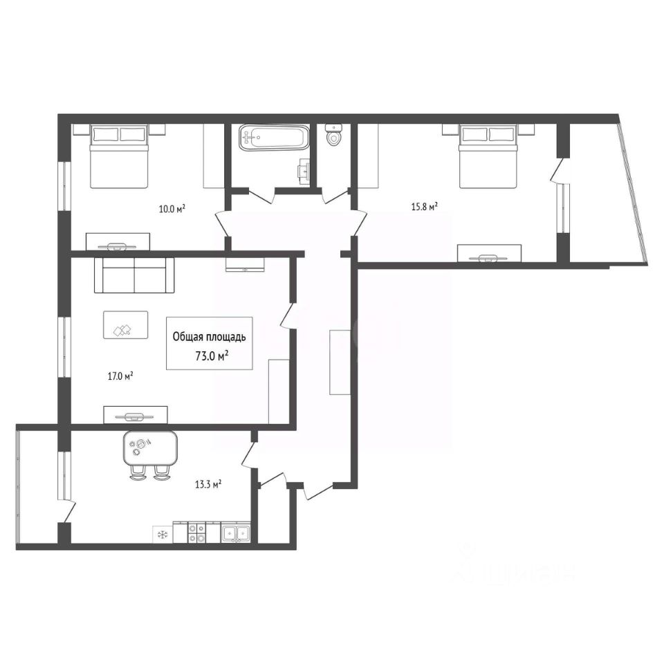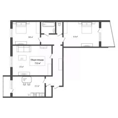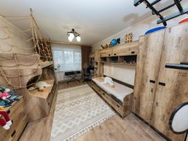Планировочное решение выгодно отличается от стандартных: это фактически четыре комнаты, где три изолированные спальни и отдельная просторная кухня-гостиная, что обеспечивает комфортное проживание для семьи или возможность обустройства кабинета.