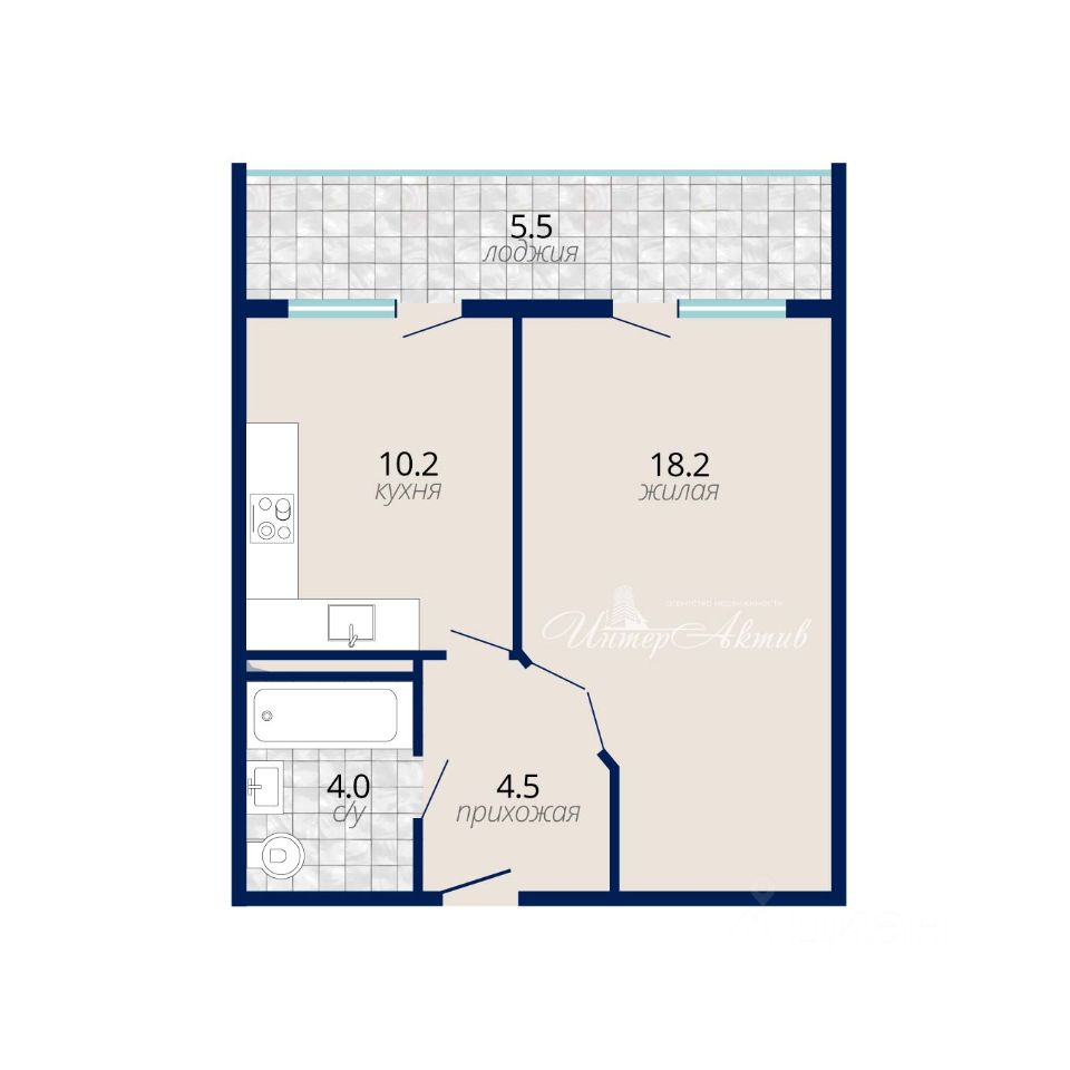 Квартира имеет функциональную планировку. В планировке предусмотрен совмещенный санузел 4 кв.м., кухня правильной прямоугольной формы 10 кв.м., жилая комната правильной формы 18 кв.м., что позволяет органомично расставить мебель, выход на лоджию из кухни и из жилой комнаты..